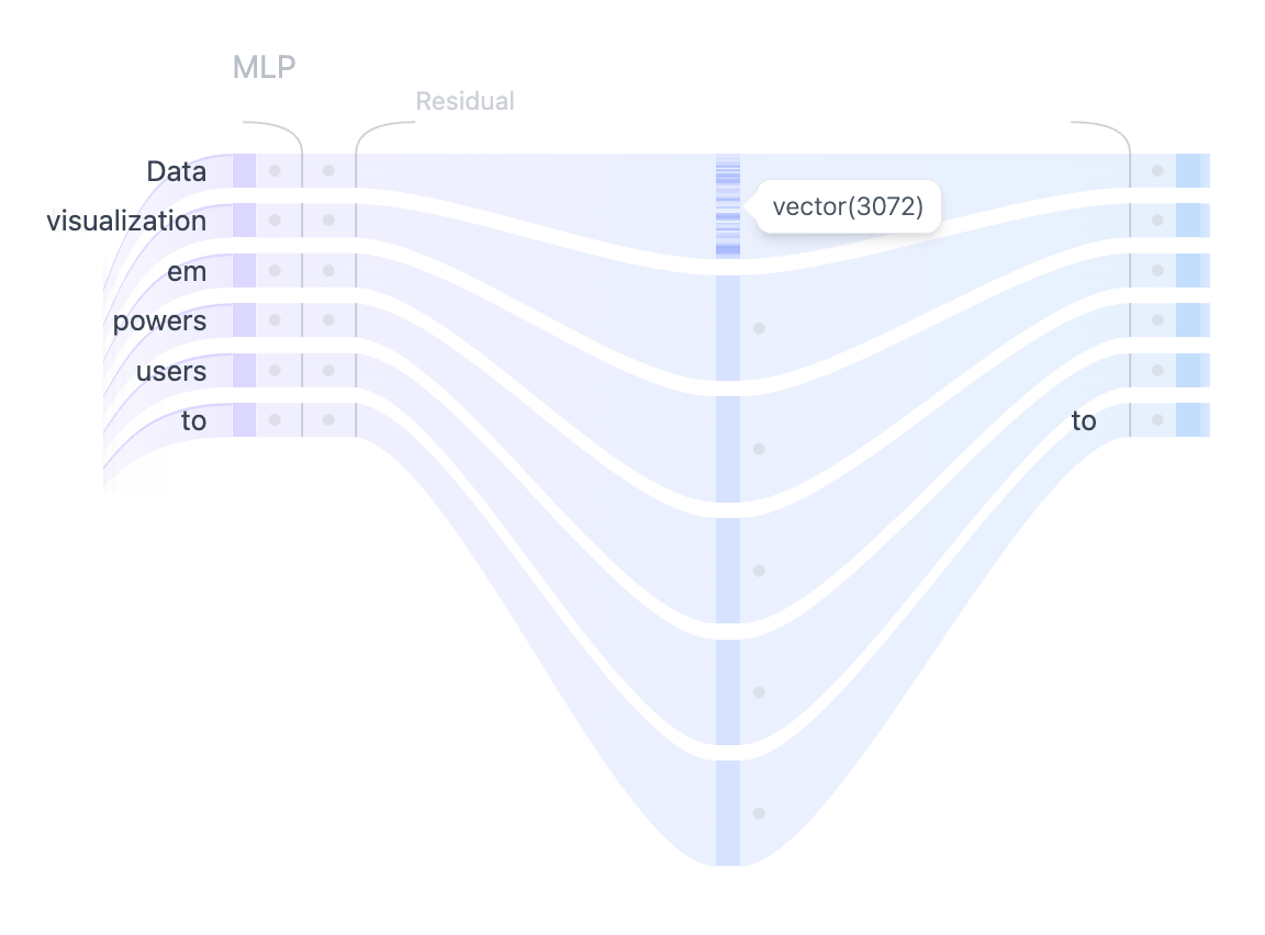 • MLP (Multilayer Perceptron) Layer, a feed-forward network that operates on each token independently. While the goal of the attention layer is to route information between tokens, the goal of the MLP is to refine each token's representation.